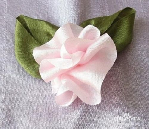 将布料翻到背面去,在花朵丝带上,来回的缝几针,缝好后打结并剪断线,在用剪刀将多余的丝带剪掉。一朵用来装饰的花朵就绣好了。