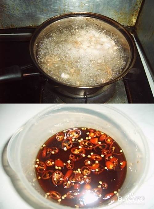 小米辣洗净切碎放入小碗中,再加入酱油,味精调好味,再把花生放进去.