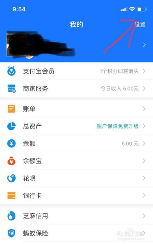 第一步,打开支付宝,进入个人中心,点击上方的"设置".
