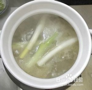 掺入清水旺火催开,撇去浮末后转入砂锅,放入大葱,转中小火熬至鱼汤乳白;