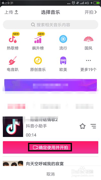 在选择音乐界面中选择自己喜欢的音乐并点击一下,在出现的选项中点击【确定使用并开拍】。
