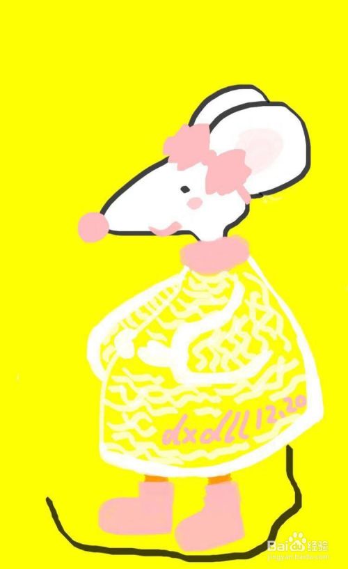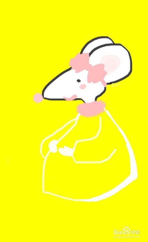 电容笔选择黄色画笔,使用油漆桶工具为背景图层上色。电容笔选择白色画笔,画出服装和老鼠前肢。