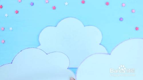 把化妆包粘在另外两朵云上。