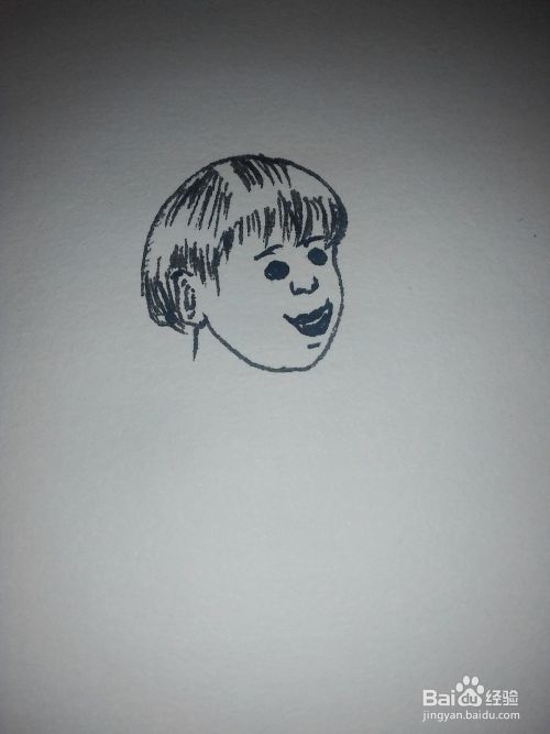 接着来画出嘴巴,嘴巴的大小和眼睛的位置是密切相关的,小女孩的脸部较圆,接着画出耳朵,和头发的发际线。