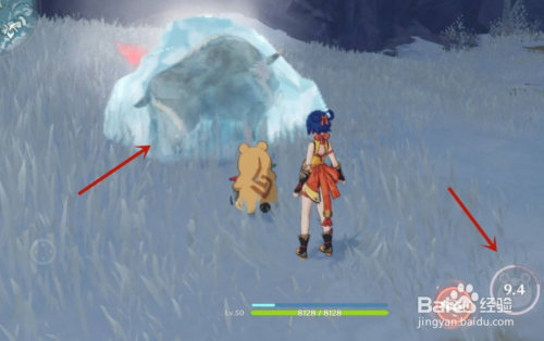第二步、在雪山这里有很多被冻住的猪,点击右侧的成火元素角色,如下图