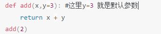 小结:在定义的时候,你想你的参数有默认值,那么你就在形参的后面加上一个等号,并且把默认值赋值给这个形参