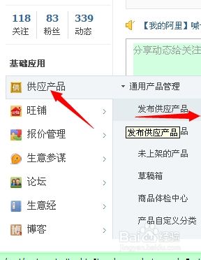 然后在我的应用里添加上供应信息模块,点击供应产品这个模块。然后剩下的的步奏和方法一就一样了。我要发布,选择自己的产品类目,填写编辑属性价格标题插入图片等步骤之后提交。
