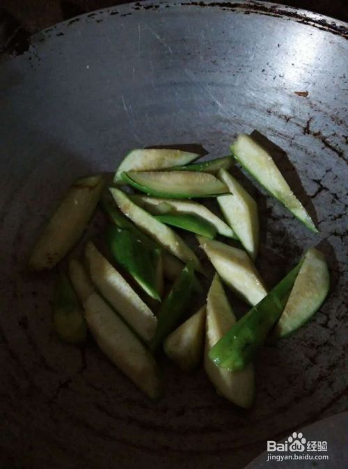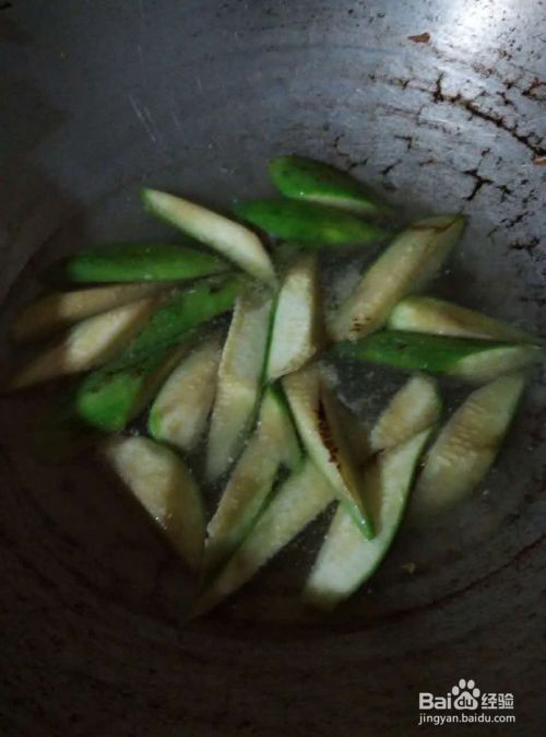 第三步:开火锅里放少许油,待油热放丝瓜条