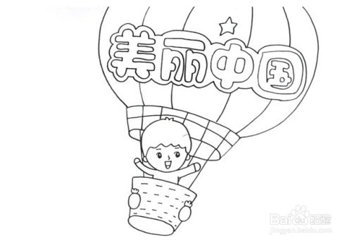 先画出报头文字,加上边框,再画一个乘着热气球的小男孩,注意画出热气球上的轮廓线条,篮子上画一些虚线。
