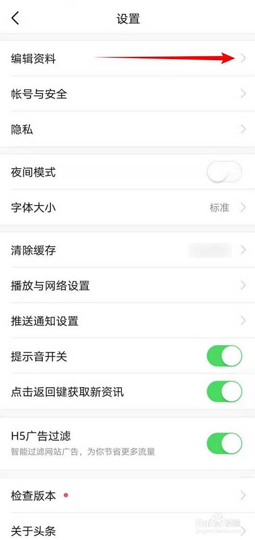 在设置页面,有十余项设置项,点选编辑资料右侧箭头;