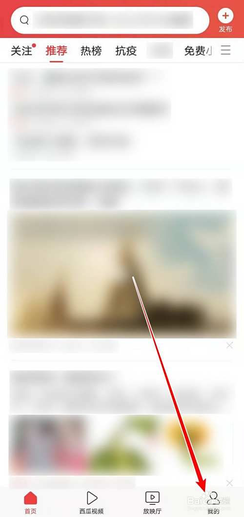 在今日头条APP首页,新鲜的新闻动态,点选右下角我的;