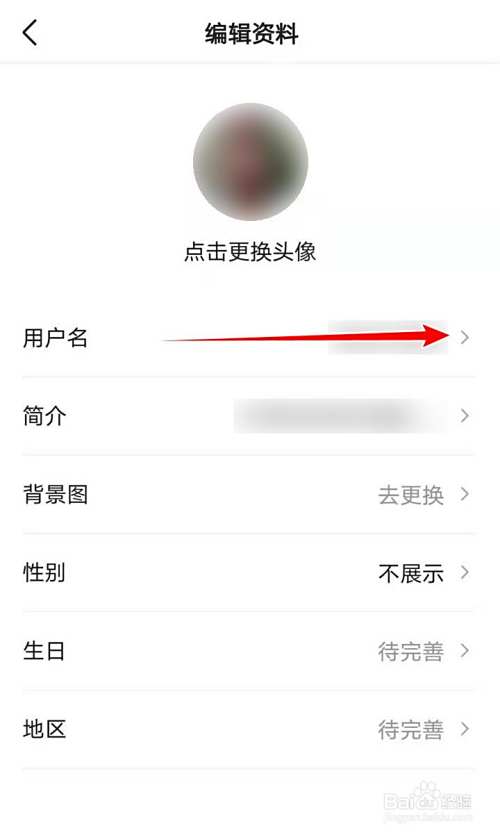 在编辑资料页面,可供编辑项有7项,点选用户名右侧箭头;