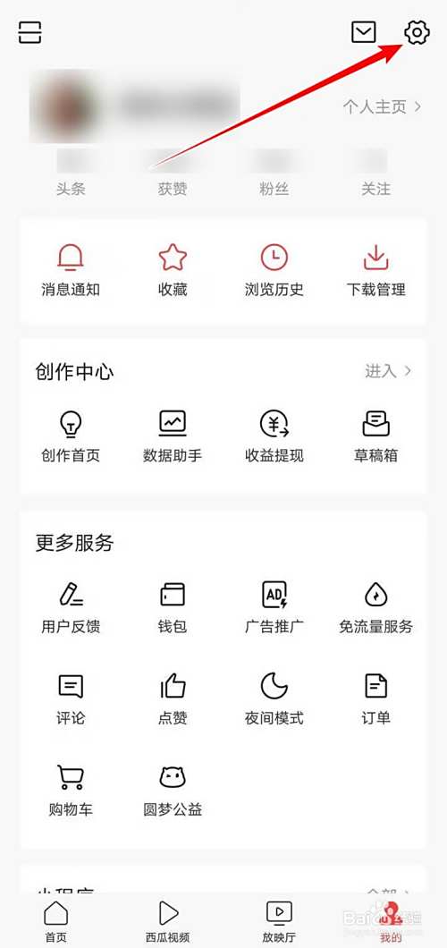 在我的页面,信息及服务项目很全面,点选右上角的齿轮;