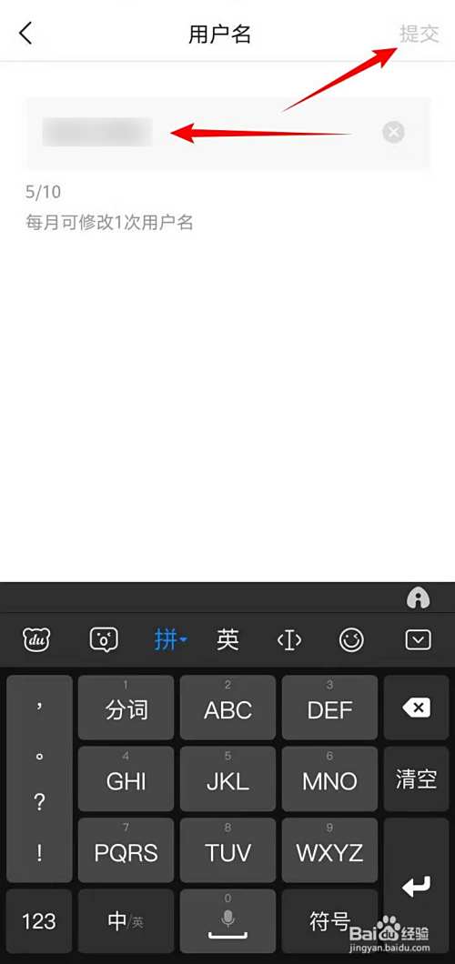 在用户名页面,按要求输入用户名,点选右上角的提交;