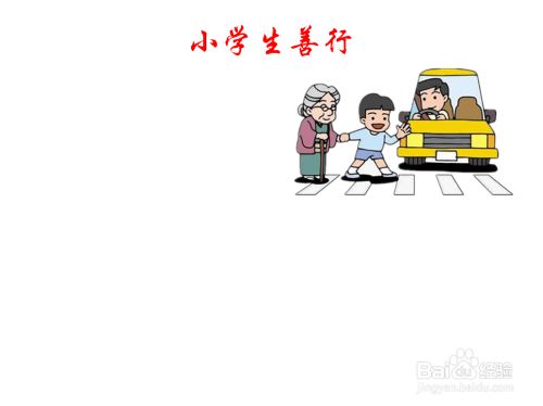 右上方画上一个小学生扶老奶奶过马路的画面,表达“小学生善行”手抄报的主题。