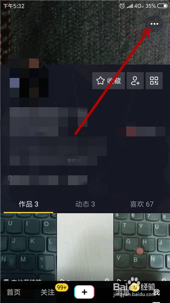 这样就会打开抖音的个人主页了,然后点击右上角的【…】打开设置。