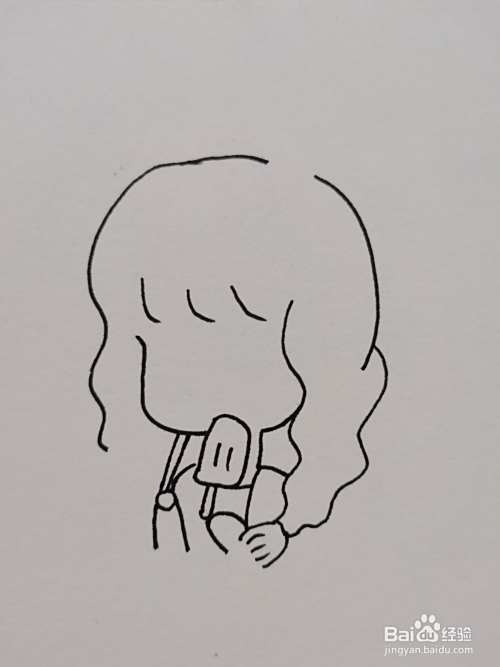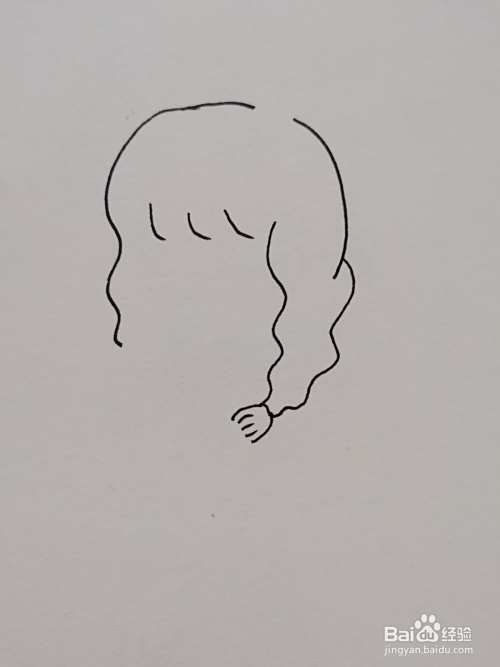 首先我们用弧线画出人物的刘海和发型,这是人物头部的外轮廓。