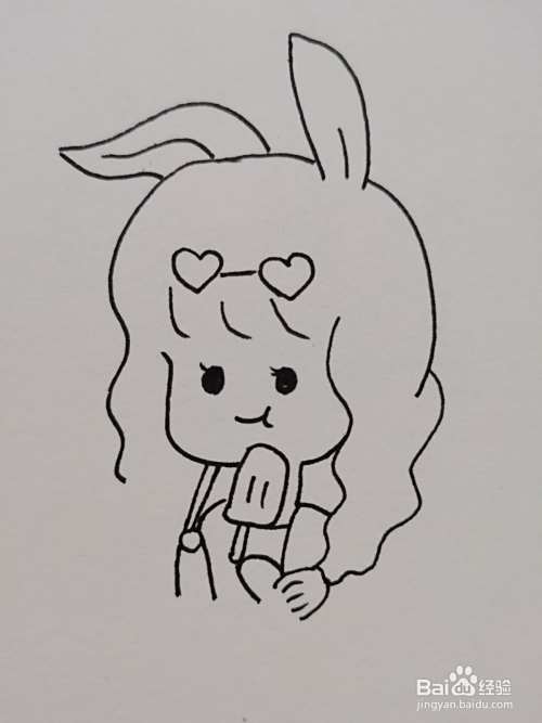 接着画出萌妹子的五官,然后给她画上兔耳朵做装饰。