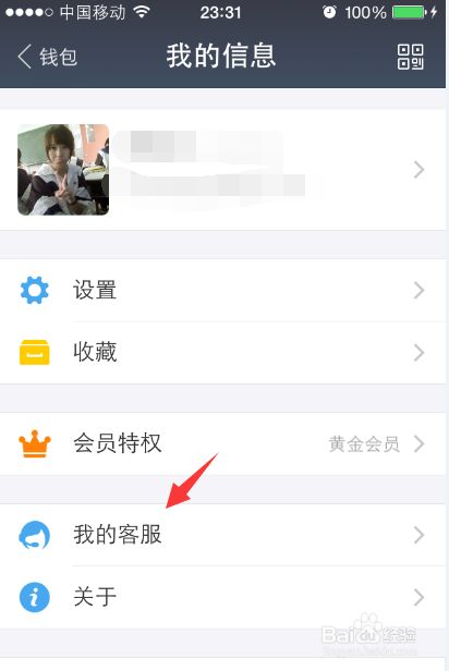在我的信息管理选项下,找到倒数第二个选项“我的客服”,这里点击打开我的客服。