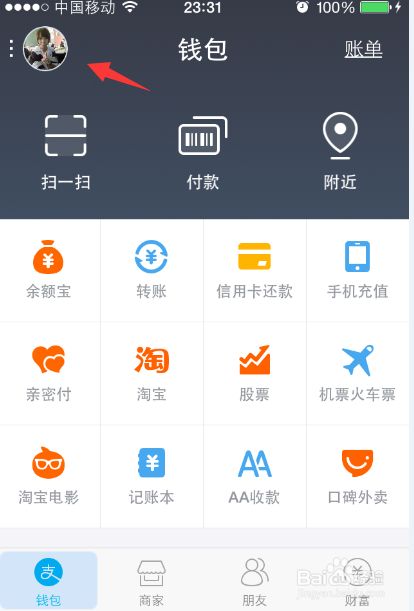在手机上打进入我们的支付宝,在进入主窗口后点击我们自己的头像。