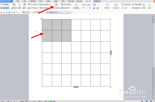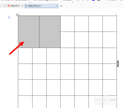 假如要合并左上角六格,先要将这六格全部选中。然后可以点击上方工具栏“合并单元格”按钮,如图。这样,所有被选中的单元格就合成了一个格子了。