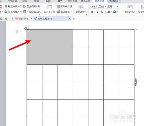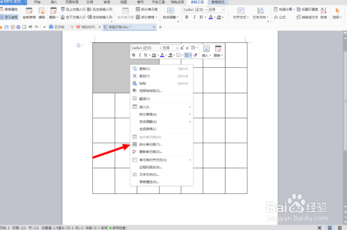 现在我们把这个大单元格进行拆分操作。也是先选中这个单元格,然后右击鼠标,从下拉菜单中选择“拆分单元格”选项。