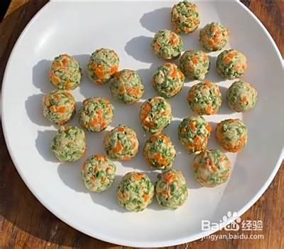 开始团团子,把拌好的蔬菜团成一个个的小团子。