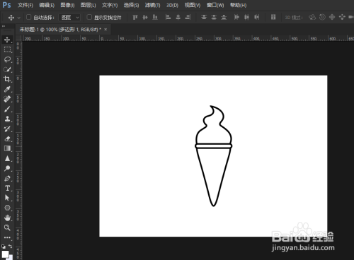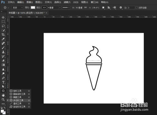 从工具栏找到“钢笔工具”,或者使用快捷键P,勾出一个形状,填充白色,加上黑色描边