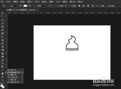 然后从工具栏找到“圆角矩形工具”,绘制一个圆角矩形,移到相对应位置