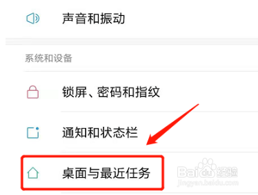 在手机桌面找到“设置”,找到“桌面与最近任务”栏,点击进入。