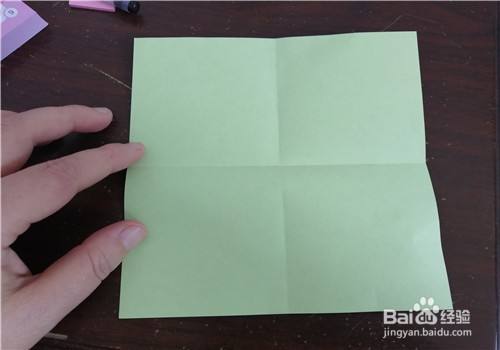 准备好一张正方形的彩纸,把彩纸的中线对折,再把左下角向内折。