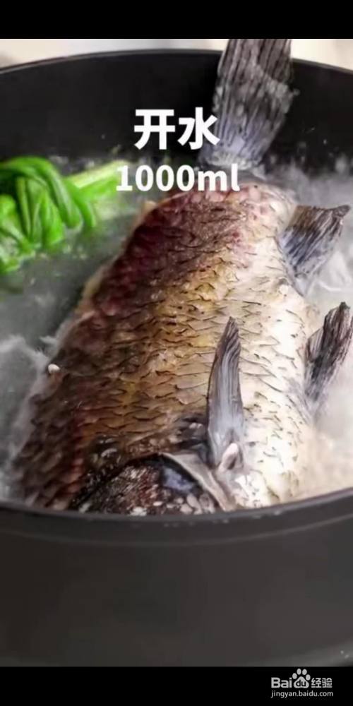 放两片姜,三根葱,炒香,加入开水1000毫升,大火烧十分钟。