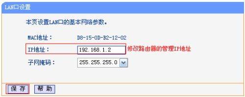 修改管理IP地址,登录路由器的管理界面,点击网络参数>>LAN口设置,修改IP地址(如主路由器的IP地址是192.168.1.1,则副路由器修改为192.168.1.2),保存并重启路由器。