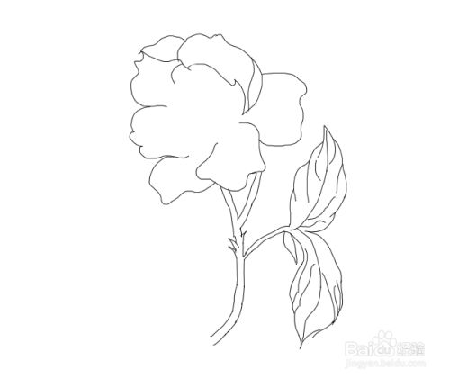 在花茎的右侧再画出蓝玫瑰的叶子的轮廓,如图所示: