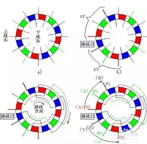 电机绕线接线方法图解,有下面几个步骤: