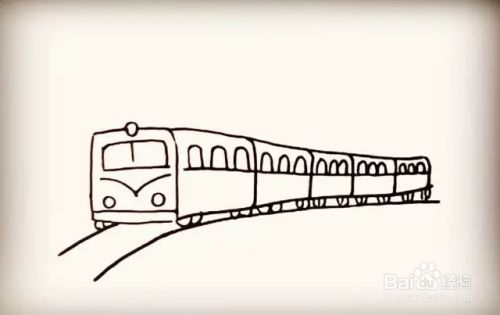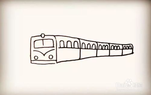 在用二条线画出它的轨道.注意轨道不要离车身太近。线与车身的中间画出火车的轮子.要留意轮子的距离。