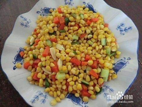 玉米中含有丰富的矿物质、蛋白质和脂肪,中医认为其味甘、性平,可调开胃口、益肺宁心,有健胃利尿之功用。玉米粒的做法很多,根据口味可分为甜口和咸口,在这里介绍的是咸口,味道清香,营养丰富。
