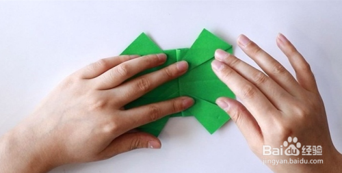 把左边的角压折到里面去,右边部分微微向下压折。