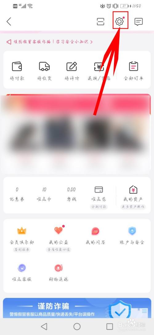 打开手机上的唯品会,点击左下方的人物图标