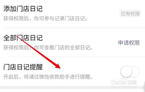 找到门店日记提醒选项,打开右边的开关就可以了。
