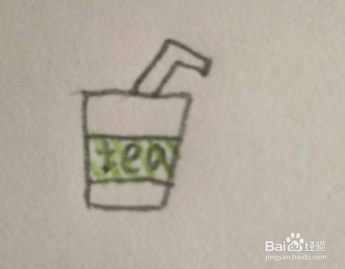 最后,给杯子写上“tea”字样。这样一个简笔画热茶吸管杯就画完了。