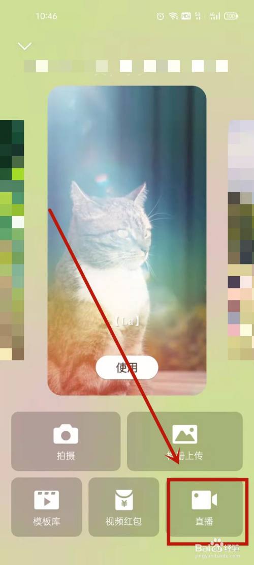 进入页面后,点击直播。