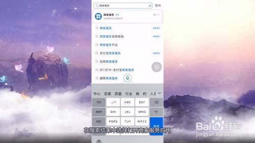 打开进入支付宝,点击上方搜索栏,输入商家服务,在搜索结果中选择打开商家服务应用。