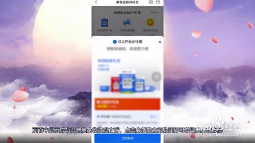 页面中显示成功开启商家收款码之后,点击底部的立即购买即可获取商家收钱码。