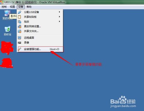 安装虚拟机的“安装增强功能”,安装完成之后。就开始在实体机和虚拟机之间建立文件的共享了。安装增强功能后,需要重启虚拟机。