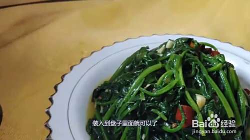 炒20秒后加入菠菜叶,锅中加入适量的盐、适量的鸡精,加入适量的清油。