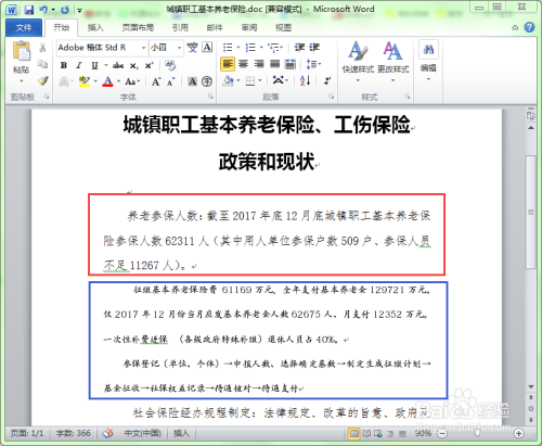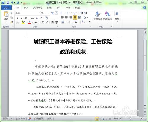 在这个文档中我们可以看到,第一自然段和第二、三自然段中的文本格式不一样。现在想让第二、三自然段中的文本与第一自然段中的文本格式相同。