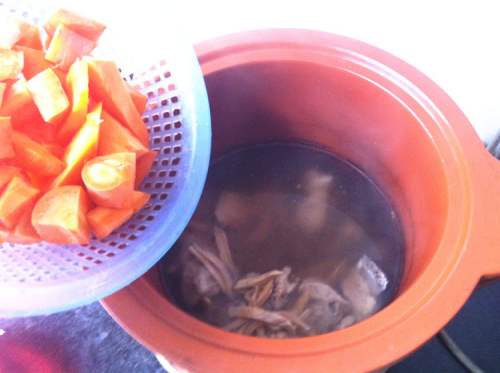 55,倒入焯烫好的胡萝卜块,继续煮半小时左右。