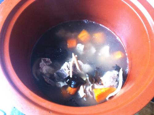 66,加入少许醋,可使肉质软烂出味,再倒入黑木耳,继续煮半小时左右。