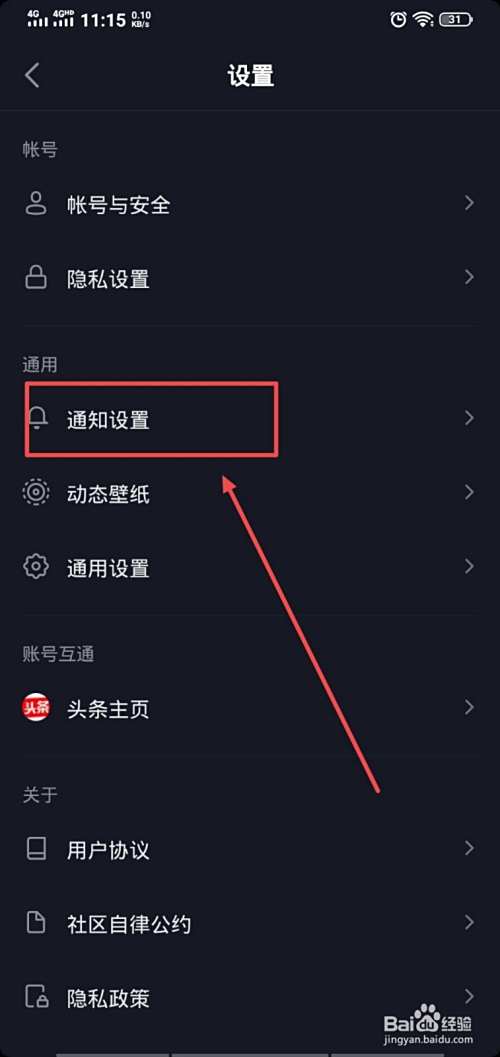 在设置中点击“通知设置”;